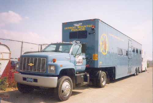 In 1991 Detroit Police (MI) purchased this Chevrolet tractor with attached trailer to transport officers and their horses to events.