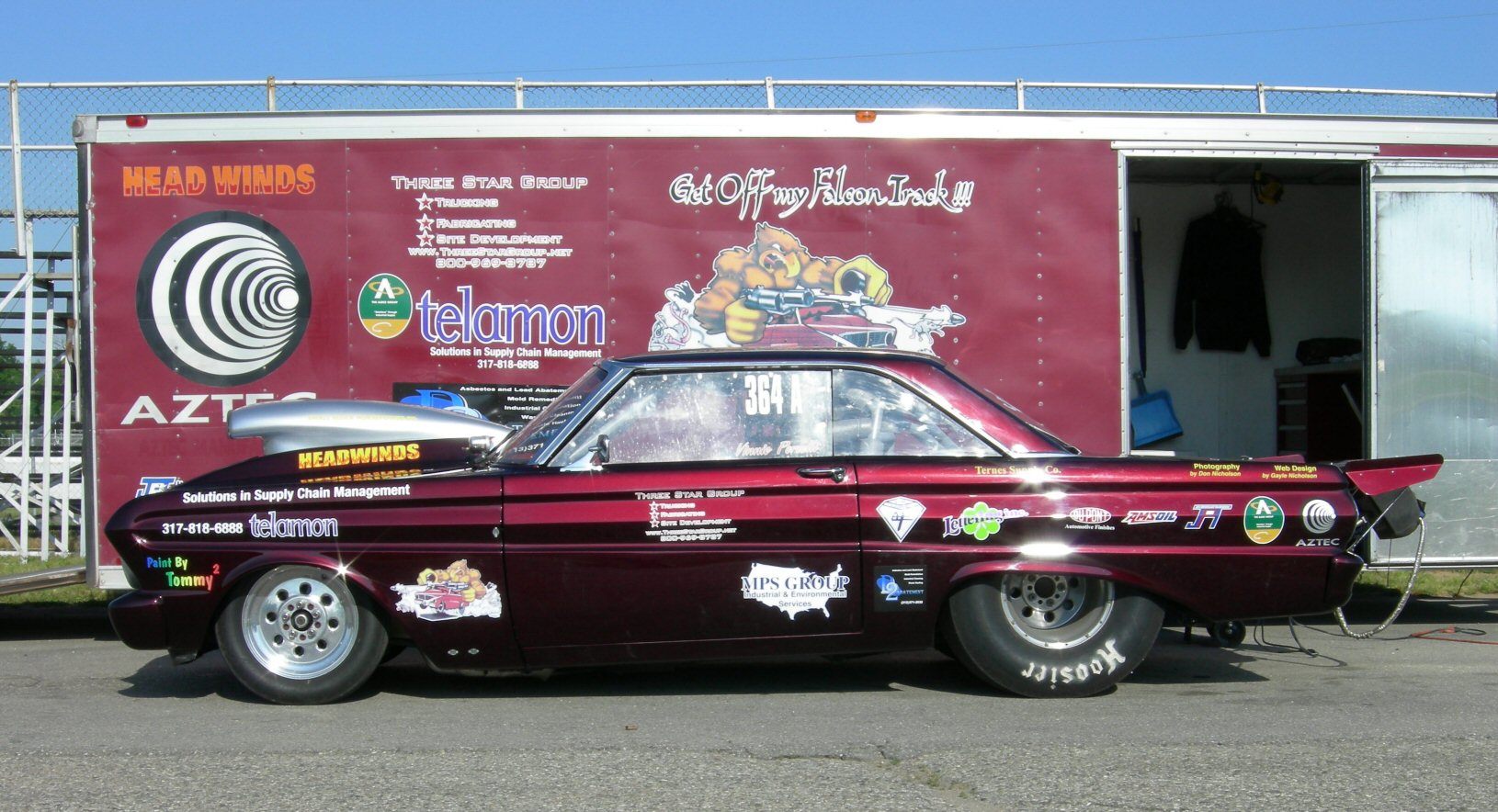 This is a photo of the Eaton Corporation Appreciation Day. Eaton Corp rented the race track for the day and invited all its customers, suppliers and friends to a day of racing, food, and great people. This is a yearly event and we have attended every year. The car was running 9.21 seconds at 147 mph, but the day was filled with a lot of inexperienced racers breaking their cars and causing the track to be shut down for quite awhile. We made 1st call for our catagory and won the 1st round then loaded up and went home. We had already been there for 11 hours and met and talked to a lot of people. What a great day, some of our sponsors showed up and visited with us for the entire day. Eaton had a food tent and served a great dinner at 4 pm. So we all sat around and talked and had a wonderful time just eating and talking with all the suppliers and employees and customers that currently work with Eaton Corporation. Thanks to Melanie for the invite! Vinnie Porcelli |