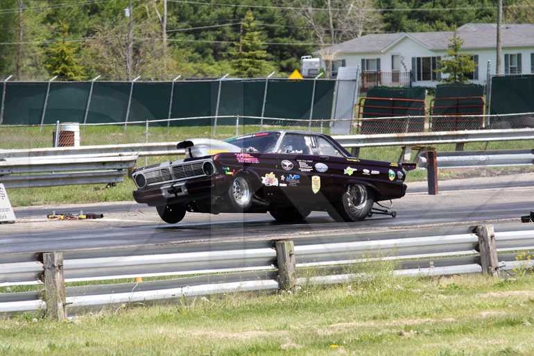 How's this for a scary ride? The car is running in the 8.40's and 8.50's at Milan and Lapeer, exactly the same both places, 5.40's in the 1/8.